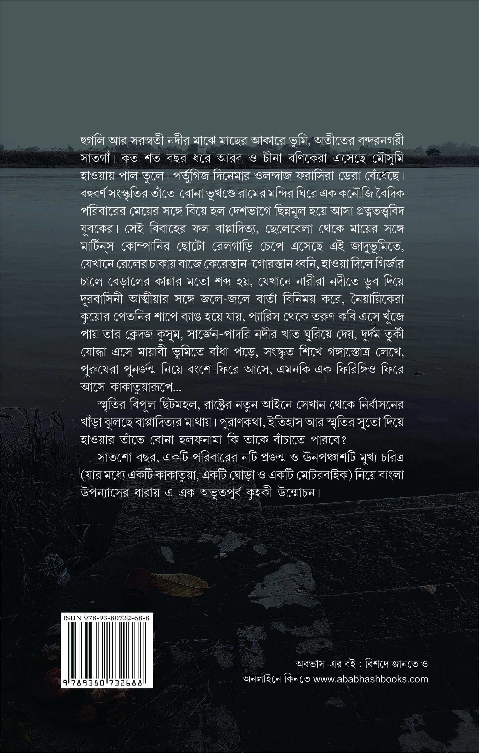 Winner of Ananda Puroshkar 2026 Satgaon-er Haoatantira : A Novel On the fish-shaped land between the rivers Hugli and Saraswati stood the ancient port city of Satgaon. For centuries, Arab, Chinese and European merchants have sailed in here, propelled by the mawsim winds. The Portuguese, the Dutch, the Danes and the French have set up trading posts. Here, upon this rich cosmopolitan landscape, a clan of Kanauji Brahmins had set up a home around a temple dedicated to Lord Ram. A girl from this clan marries a young archeologist, an East Bengalirefugee, who comes to Satgaon on a project. Bappaditya, their son, is the novel's hero. Since childhood, Bappa has been regularly coming with his motherto this magical land, riding a fairly-tale light railway train, a land where a church steeple caterwauls on windy days and women exchange sonic messages with their kin by taking a dip in the river, where Vedic scholars are turned into toads by the curse of an ogress who dwells in a well, and a young Parisian poet finds his flower of evil, where a Turkish warrior finds peace and stays back, and learns Sanskrit to write an ode to the Ganga, where members of the clan return after death, and even a firangi’s soul returns, reincarnated as a Javanese cockatoo. A new law threatens to eject Bappaditya from this fabulous enclave of memories. Can an affidavit woven with the illusory strands of history, myth and memories save him? A magnificent novel spanning seven hundred years, nine generations of a family, and including 49 main characters— among whom there is a cockatoo, a horse and a Harley Davidson motorbike.